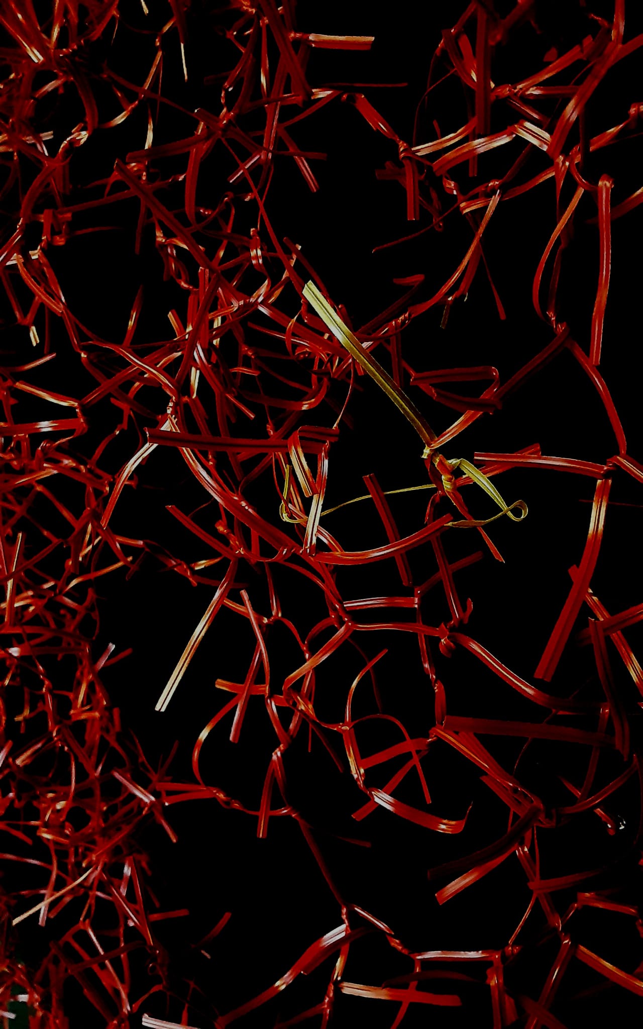 Retiene en su espesura un diario de mañanas y tardes de una decena de manos que retuercen y cortan para volver a unir y dar nueva forma; un coro de murmullos, confesiones y de silencios acompasados mientras las manos giran veloces, generando nudos y torsiones para armar esas pequeñas matas alveolares que luego formarán parte de un todo mayor; son manos amigas que se han ido sumando y haciendo suya la propuesta de la artista.